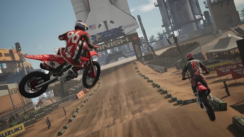 • Realistic Physics Engine: Experience the raw power and precision of Supercross bikes with a refined physics engine that accurately simulates bike handling and track conditions.